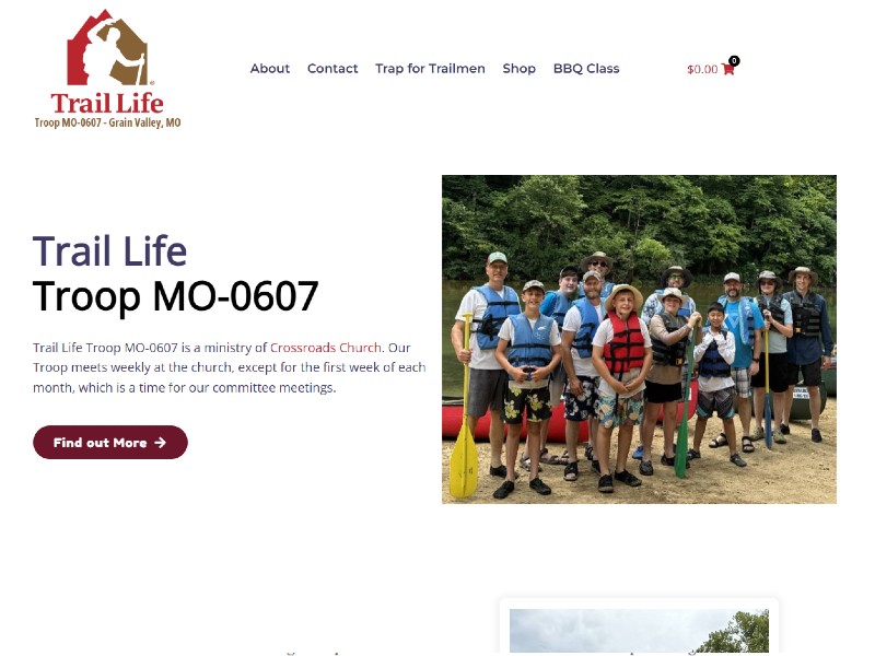 Trail Life Troop MO-0607 (Trail Life GV) is a faith-based outdoor adventure program for boys in Grain Valley, Missouri, operating as a ministry of Crossroads Church. Aligned with Trail Life USA, the troop offers structured programs including Woodland Trails (ages 5–10) and Navigators & Adventurers (ages 11–17), focusing on character development, leadership, outdoor skills, and Christian values through weekly meetings, campouts, and special events.